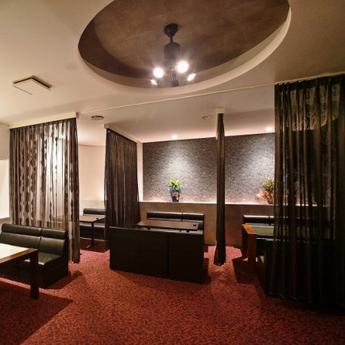 仕切りありの1階のお席は柔らかな照明のテーブルソファ席をご用意しております。4名席×5卓あり、広々した店内でゆったりとお過ごし下さいませ。